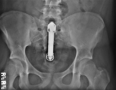 Met het schaamrood op haar kaken bekent de vrouw dat ze een vibrator in haar vagina heeft ingebracht, die ze er niet meer uitkrijgt. Ook de broeders op de Eerste Hulp lukt het niet de vibrator, die overdwars klemzit, te verwijderen. Een operatie is noodzakelijk.