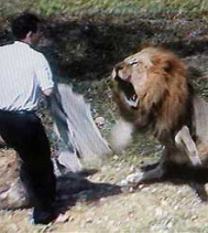Een 27-jarige man heeft zich in de Duitse stad Neurenberg letterlijk voor de leeuwen gegooid.